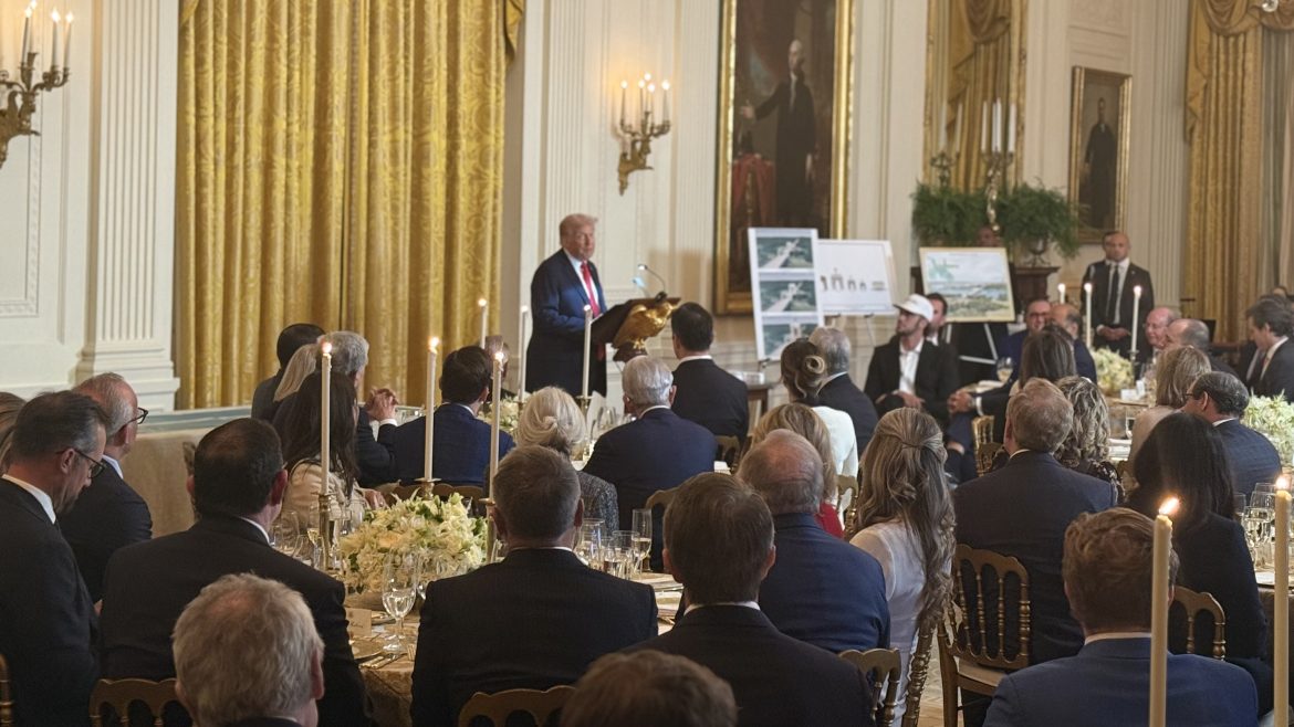 President Trump will host a dinner tonight in the White House East Room, reportedly aimed at securing donations to build a new White House Ballroom.