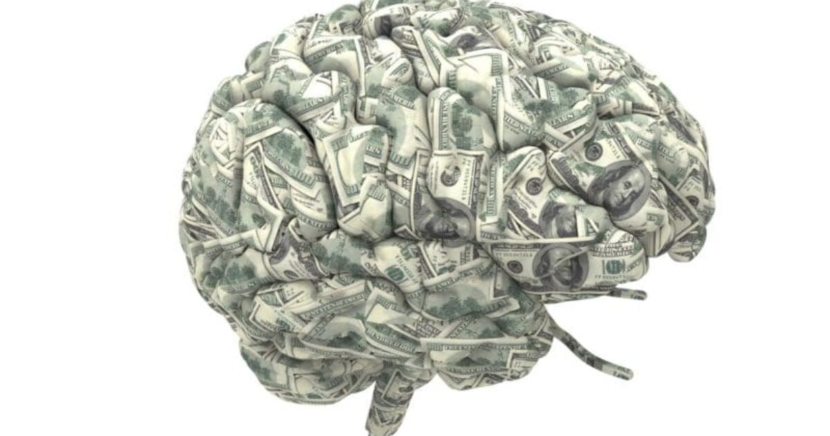 A brain made of money, symbolizing the connection between financial intelligence and wealth creation.