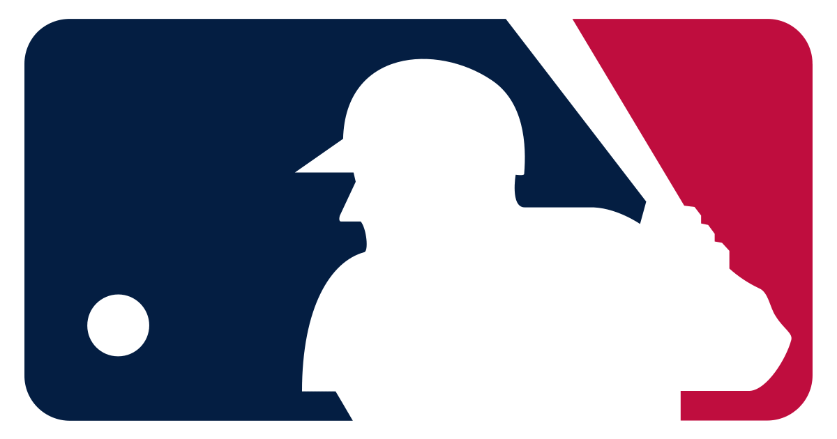 MLB logo featuring a silhouette of a baseball player preparing to bat, set against a blue and red background.