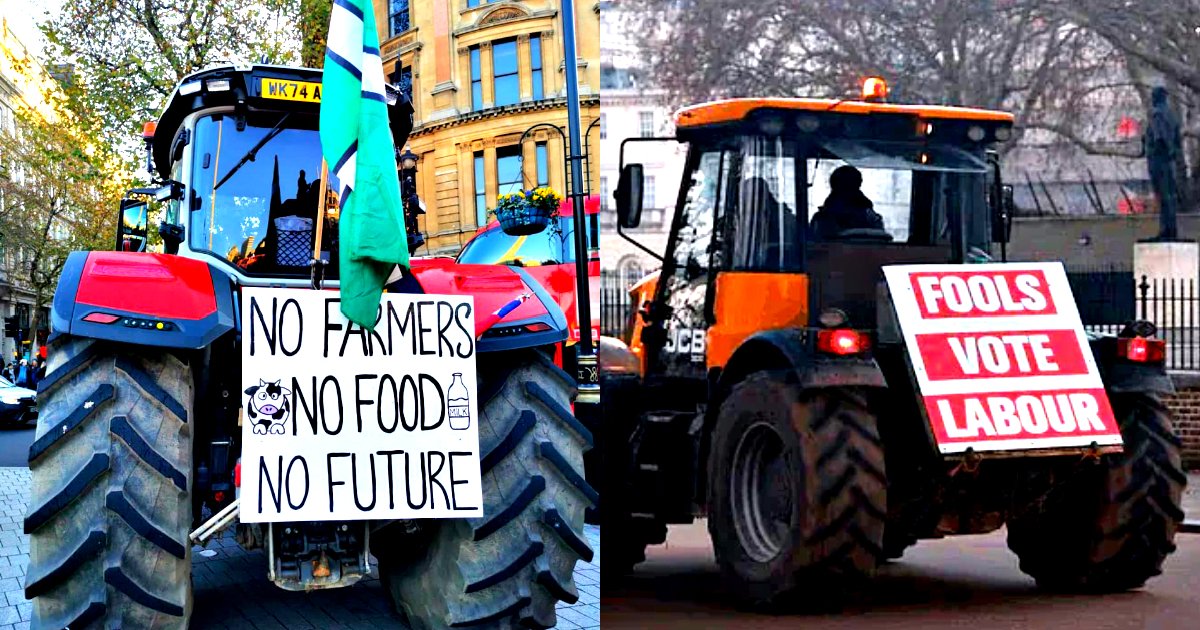 UK’s farmers up block the roads, waving British flags with demands “Labour out!”