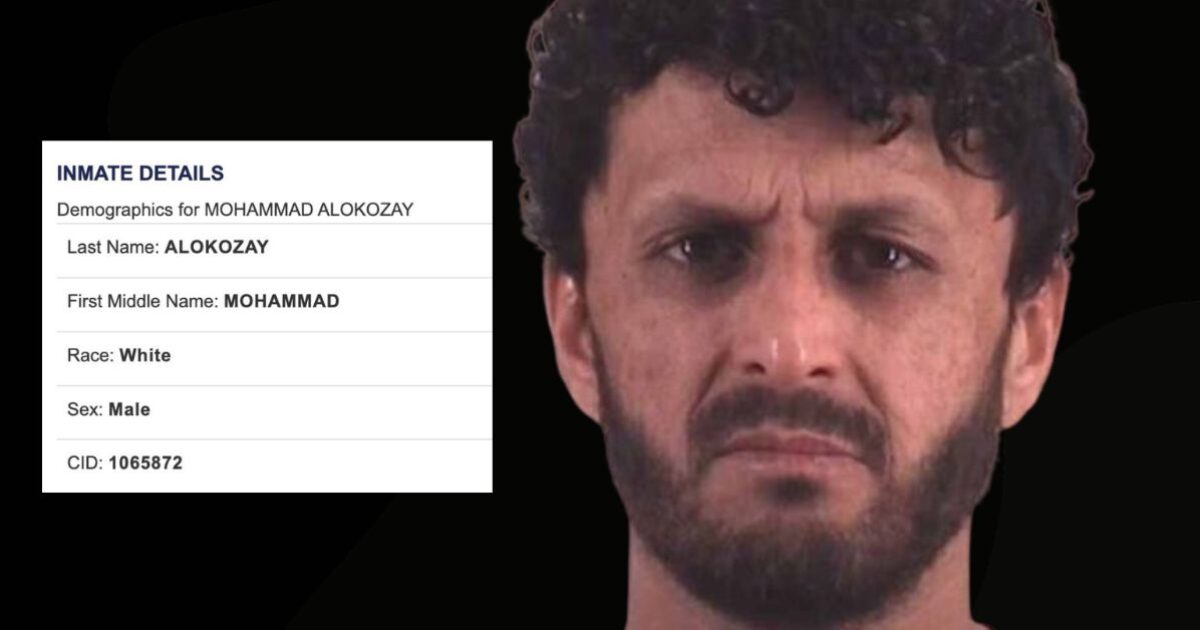 A post from Libs of TikTok on X highlighted the inmate details, showing Alokozay’s mugshot alongside the “Race: White” entry, and questioned the vetting process under Biden.