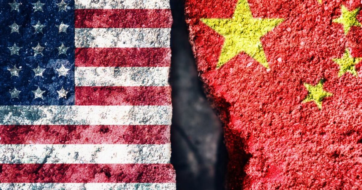 Split image featuring the American flag on the left and the Chinese flag on the right, symbolizing U.S.-China relations and international diplomacy.