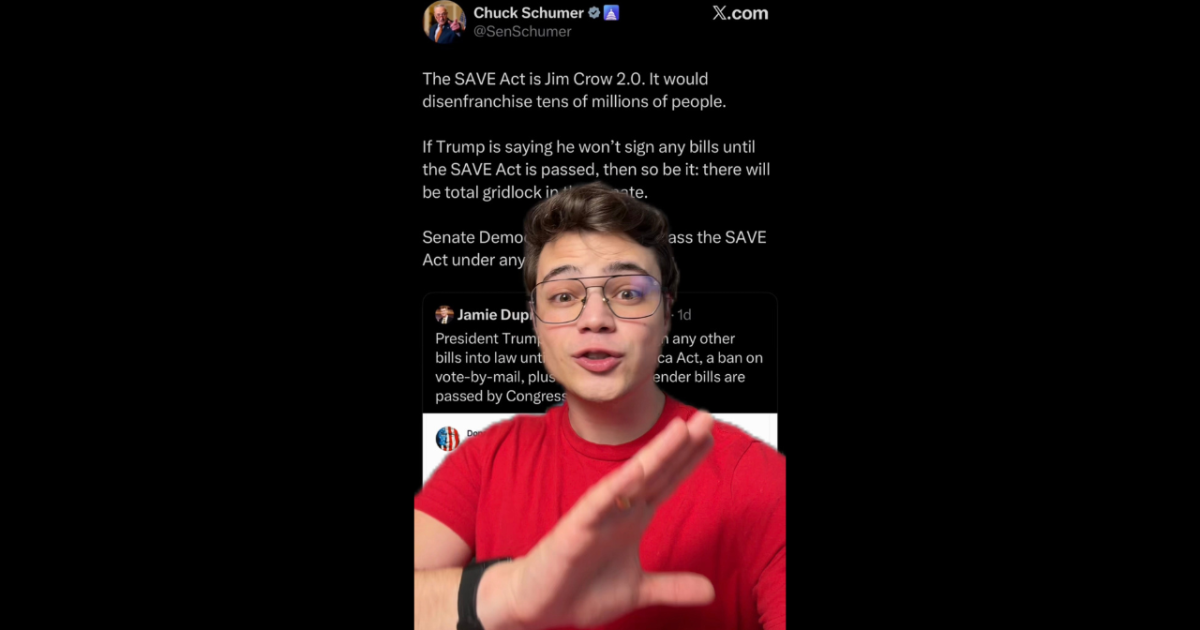Democrat Senator Chuck Schumer posted on X that he believes the SAVE America Act, which would mandate voter ID, would disenfranchise tens of millions of voters.